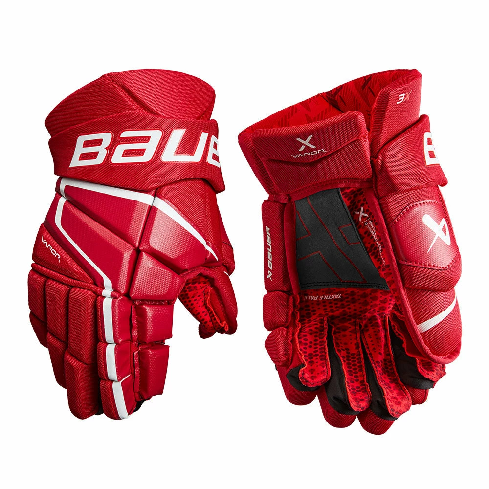 The unique VAPOR tapered fit is designed with comfort and protection in mind . The dual density foam package gives the Vapor 3X the perfect balance of protection and comfort. The exclusive TAKTILE palm with digital graphics provides a soft touch feel to the stick while the blend of cable mesh and texture PU leather creates a premium value. The great feel and comfort of the Vapor 3X is enhanced with the Nanosense liner in the finger with a sublimated THERMOMAX liner to keep your hands comfortable all game long.