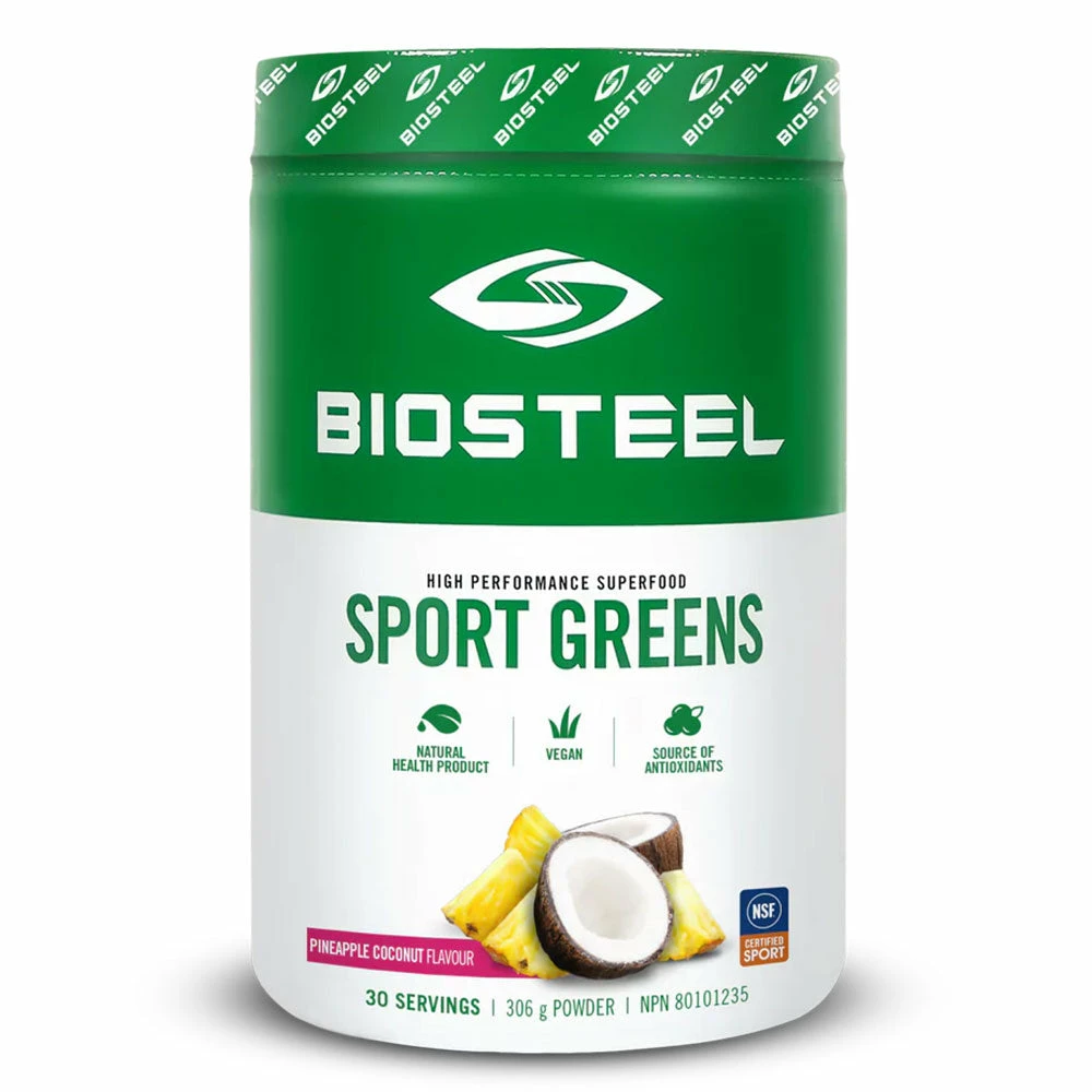 Bring your diet into better balance with Biosteel Sports Greens. This nutritional drink for athletes contains Spirulina, Barley Grass, Alfalfa, Broccoli, Spinach, kale, Goji, Blueberry, Camu Camu, Coenzyme-Q10, Tart Cherry, Green Tea and other whole food ingredients rich in vitamins, minerals and antioxidants.
