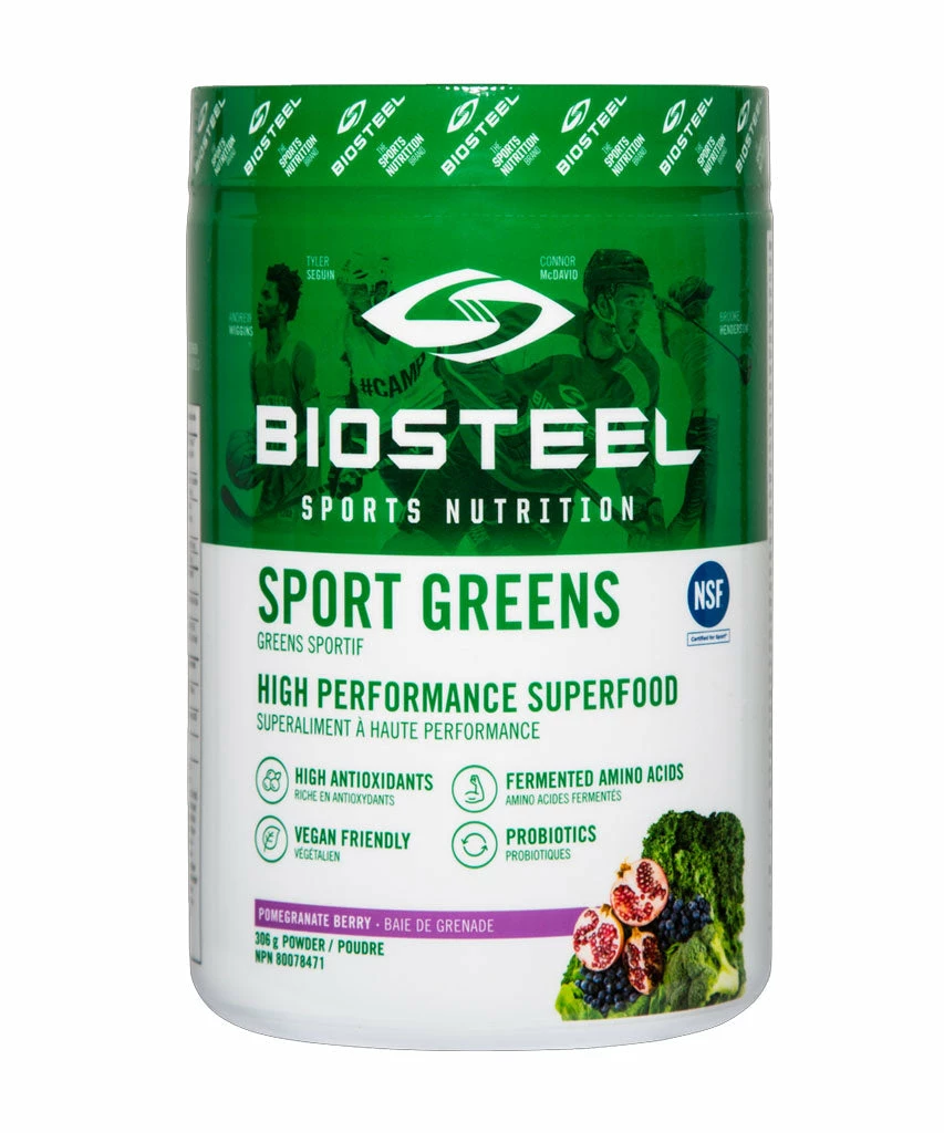 Bring your diet into better balance with Biosteel Sports Greens. This nutritional drink for athletes contains Spirulina, Barley Grass, Alfalfa, Broccoli, Spinach, kale, Goji, Blueberry, Camu Camu, Coenzyme-Q10, Tart Cherry, Green Tea and other whole food ingredients rich in vitamins, minerals and antioxidants.