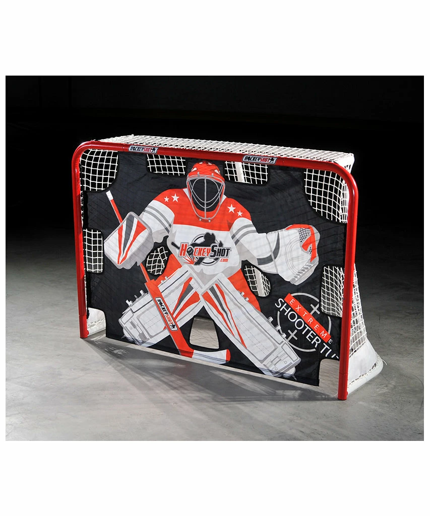 HockeyShot’s Shooter Tutor is a heavy duty nylon tarp you can fit over the mouth of a net with eleven target holes to aim for. Use it regularly and you’ll become a scoring threat and a rebounding specialist from anywhere on the ice!