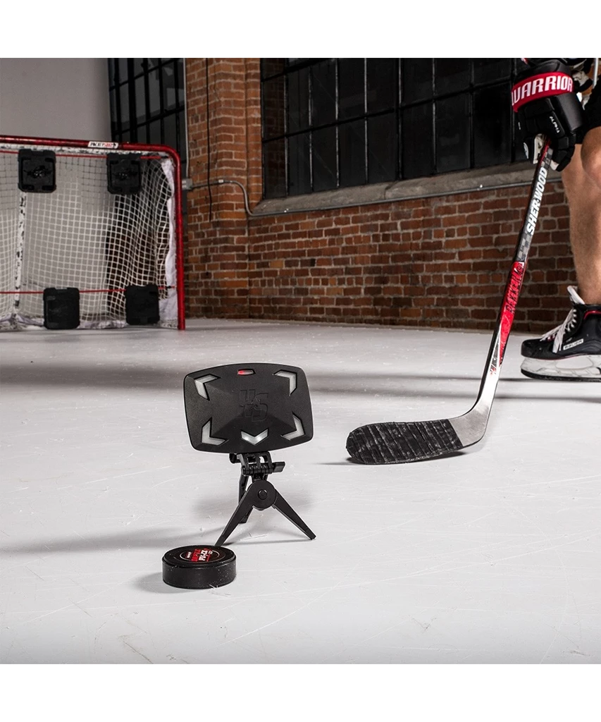 The HockeyShot Reactive Sniper is a fun and revolutionary training device designed to improve reaction time and to develop cognitive abilities. Get the most out of your hockey training sessions using the 4-color options, 5 directional arrow locations and 5 interval speed options to create an endless amount of drills for all skill levels. A versatile training tool that allows you to work on all hockey skills essentials like shooting, passing, stickhandling and cardio. The HockeyShot Reactive Sniper is designed to skyrocket your abilities to new heights in no time! For better results, combine it with other HockeyShot training aids like Synthetic Ice, Flooring Tiles, Speed Dekes or Defenders.
