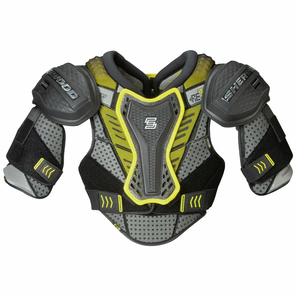 Sherwood REKKER Element 1 Shoulder Pads featuring Viconic Impact Protection panels placed strategically in the arch and rib areas deflect and disperse impact for the ultimate protection. 3D molded floating spine plate and Aerofoam panels promote maximum mobility. Lightweight and adjustable chest and abdomen Aerofoam protection provides a perfect fit every time.