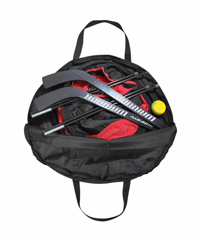 Kit includes 1 Pop Up Net, 2 Plastic Mini Sticks, 1 Warrior Speed Ball and 1 Carry Bag for easy transport.